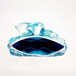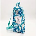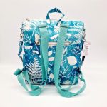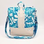 Anyaga, színe: türkisz kék alapon virág mintás vízálló gyöngyvászon poliészter, krém színű textilbőr