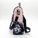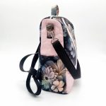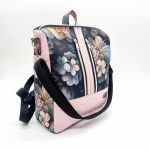 Anyaga, színe: fekete alapon rózsaszín virág mintás, rózsaszín steppelt vízálló gyöngyvászon-poliészter