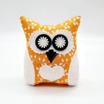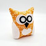 Anyaga: narancssárga színű alapon, fehér virág mintás pamutvászon, fehér színű pamutvászon, szeme, orra dekorfilc