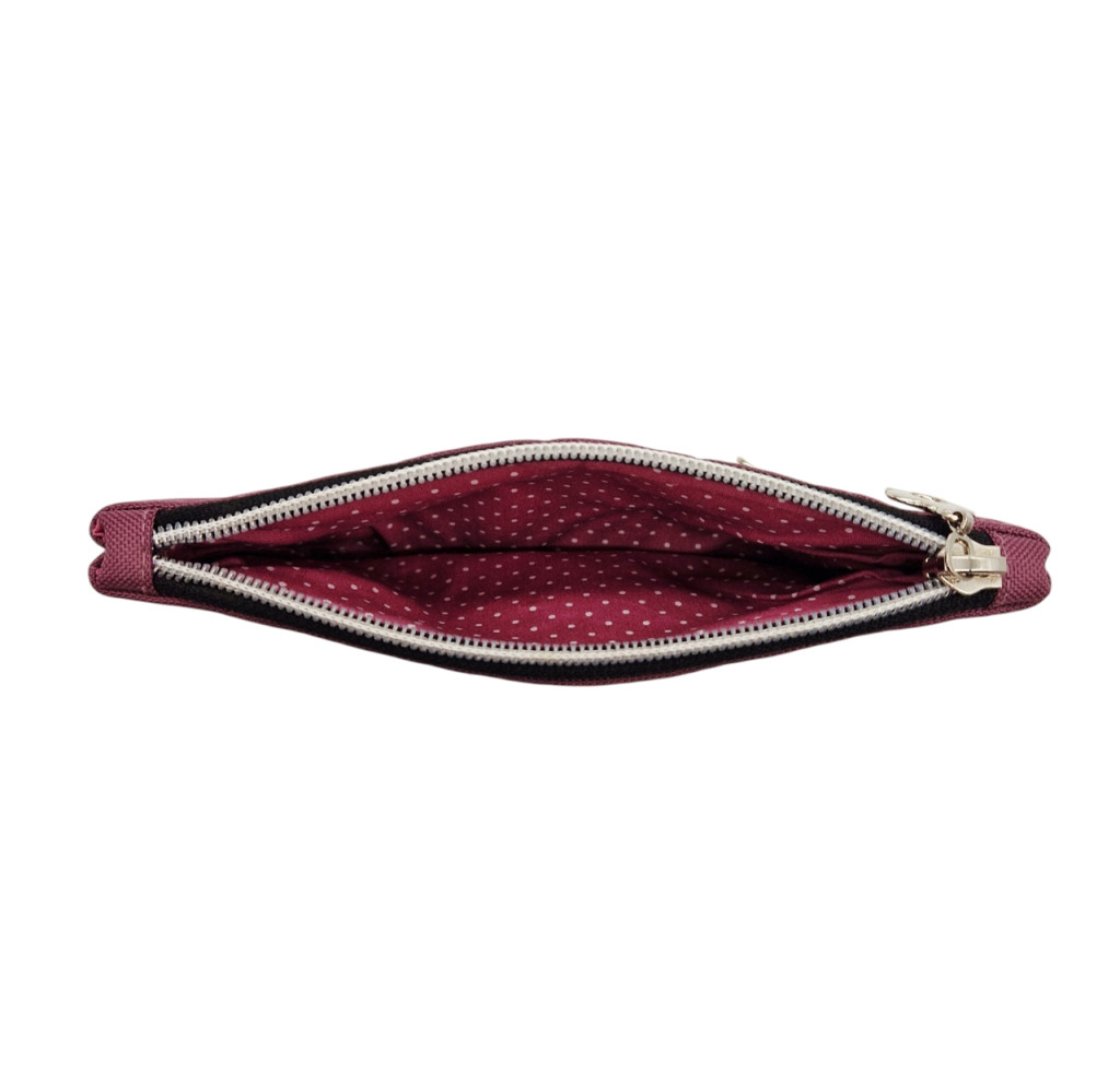 A Happy Big Női Pénztárca belseje egyterű, cipzárral záródik.