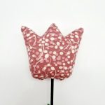 Anyag: mályva mintás pamutvászon, levele világos zöld alapon, fehér pöttyös mintás pamutvászon, szára festett hurkapálca
