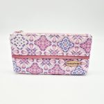 Anyaga, színe: rózsaszín mintás vászon, rózsaszín vízálló gyöngyvászon poliészter