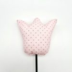 Anyag: rózsaszínű apró pöttyös mintás pamutvászon, levele zöld mintás pamutvászon, szára festett hurkapálca