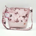Anyaga, színe: rózsaszínszín mintás vízálló gyöngyvászon-poliészter, textilbőr