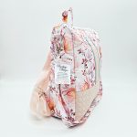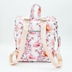 Anyaga, színe: fehér alapon rózsaszín virágos vízálló gyöngyvászon poliészter, púder színű steppelt textilbőr