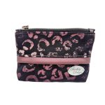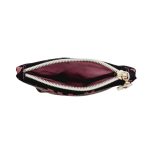 Anyaga, színe: fekete alapon mályva mintás vízálló gyöngyvászon poliészter, sötét mályva textilbőr
