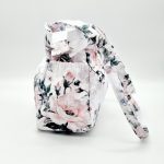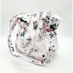 Anyaga, színe: fehér alapon, rózsaszín rózsa mintás vízálló gyöngyvászon-poliészter