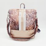 Anyaga, színe: barna mintás vízálló gyöngyvászon poliészter, rosegold színű textilbőr