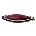 Anyaga, színe: fekete alapon mályva mintás vízálló gyöngyvászon poliészter, sötét mályva textilbőr