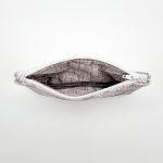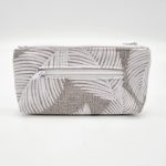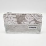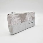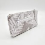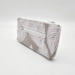 Anyaga, színe: szürke színű alapon, fehér levél mintás vászon, ezüst színű textilbőr