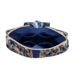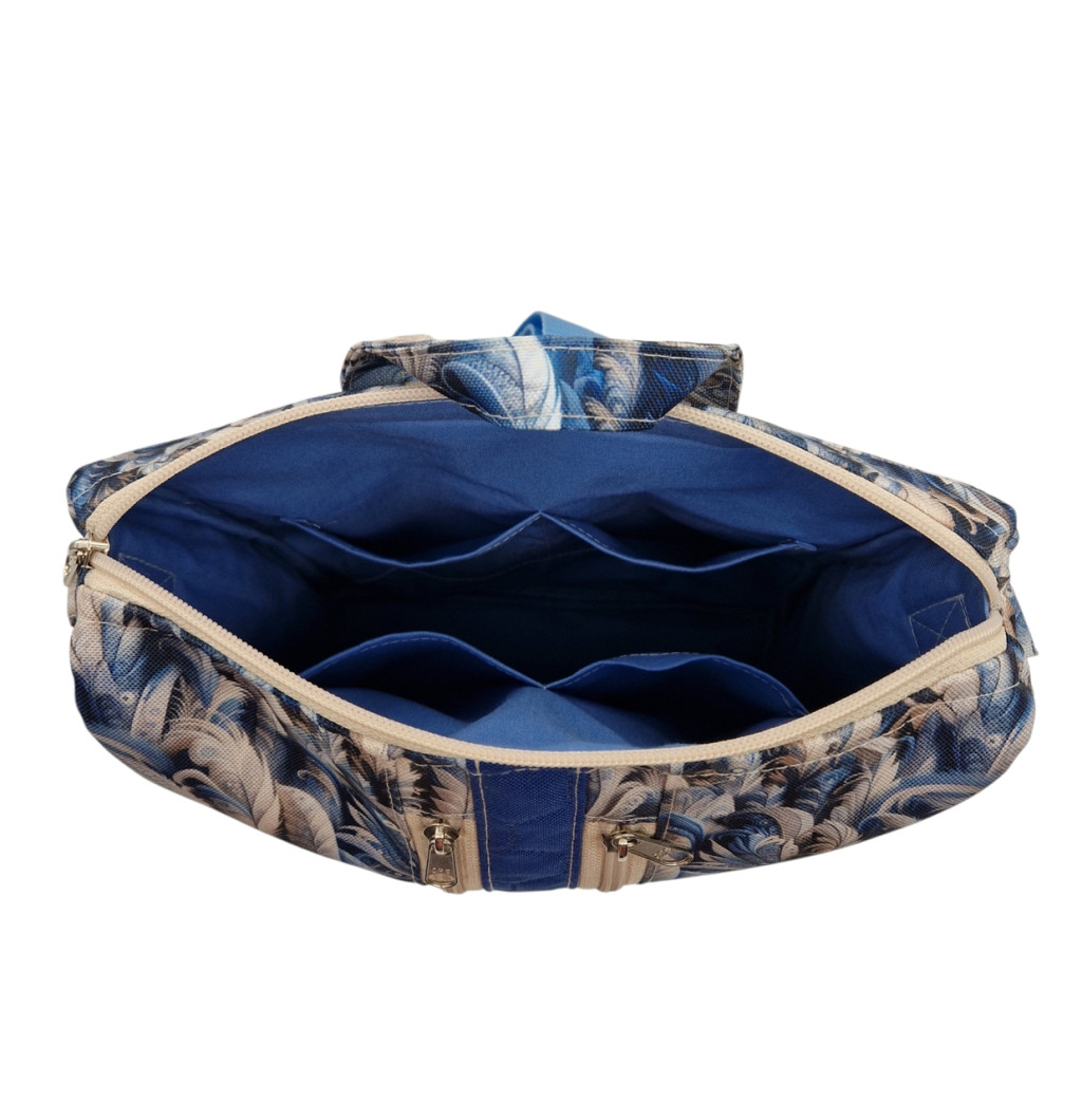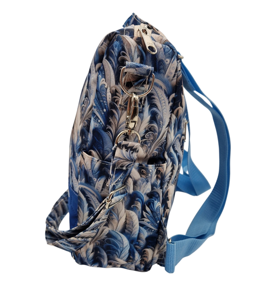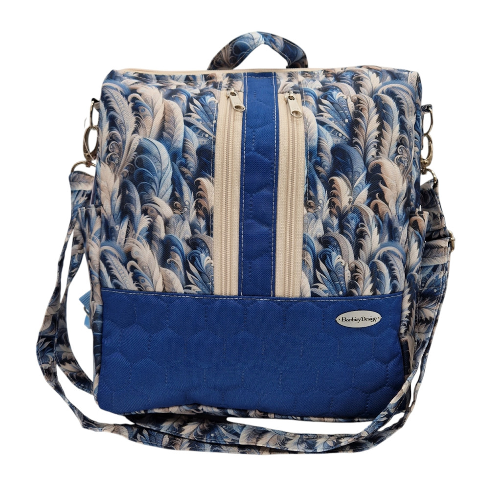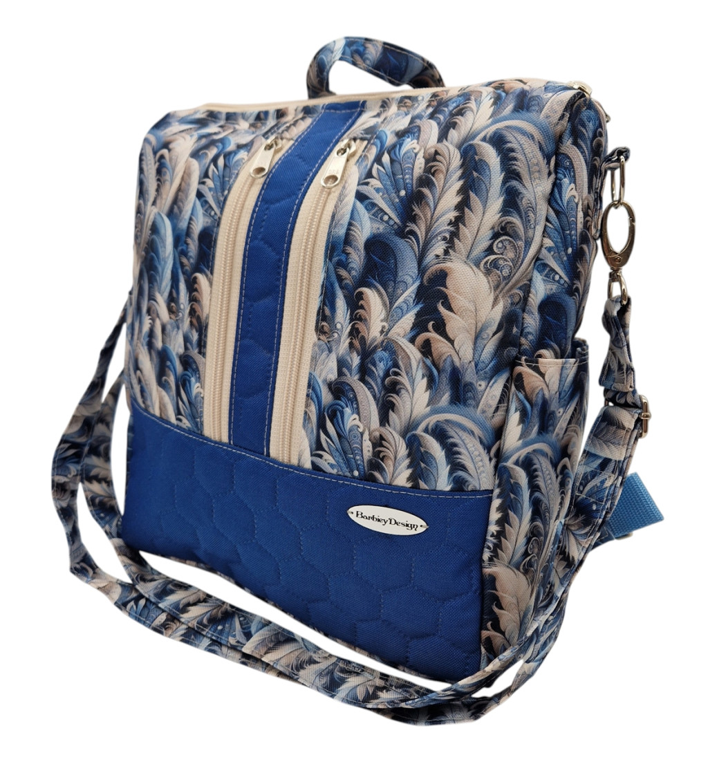 Anyaga, színe: sötét kék mintás vízálló gyöngyvászon poliészter, kék színű steppelt vízálló gyöngyvászon poliészter