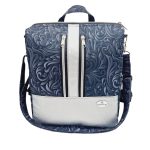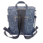Anyaga, színe: sötét szürke inda mintás vízálló gyöngyvászon-poliészter, ezüst színű textilbőr