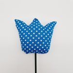 Anyag: türkisz kék alapon, fehér pöttyös pamutvászon, szára festett hurkapálca